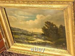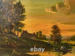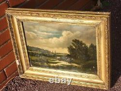 Dimensions peinture huile sur papier hauteur 25 cm longueur. Dimensions encadrement bois ancien dorée stuc. A restaurer hauteur 36 cm largeur 45 cm profondeur 4 cm. (accidents) petits sauts de peintures sur un. Pour les envois vers le reste du monde, un supplément s'applique.