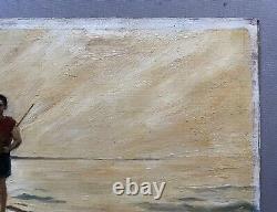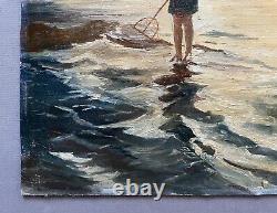 Le Petit Pêcheur, Huile Sur Toile Signée M. Durand 1932, Tableau Ancien, XXe. Le petit pêcheur' Huile sur toile signée M. Étiquette d'exposition au dos. Chèque à libeller à l'ordre de : TEISSIERE SARL, et à envoyer à l'adresse suivante : TEISSIERE, 5 lotissement ruisseau du moulin, 33370 YVRAC.